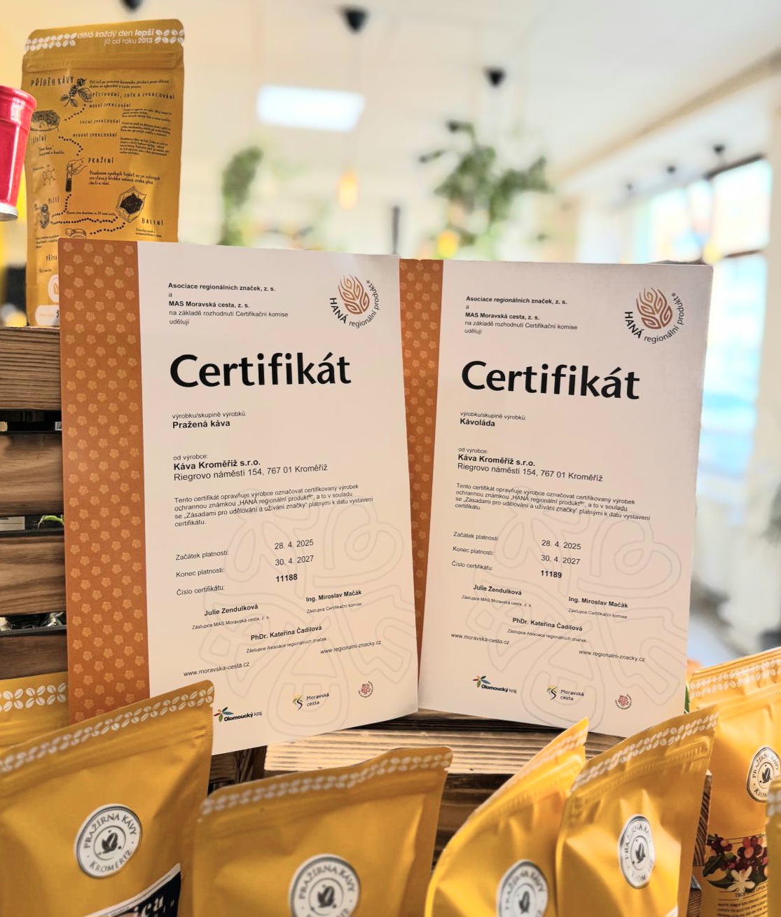 S hrdostí oznamujeme, že 3 naše pražené kávy a kávolády získaly prestižní certifikát HANÁ regionální produkt®.